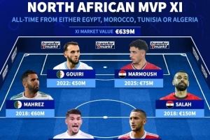 北非历史身价最高阵容(取球员的最高身价):