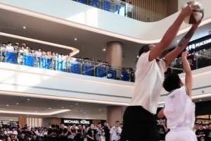 叔叔要背打了哦~阿隆-戈登中国行和小球员单挑 双手抓帽+背打暴扣
