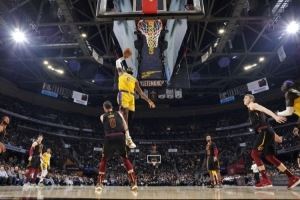 主持人邀请詹姆斯对自己湖人生涯的几大隔扣打分(10分制)。