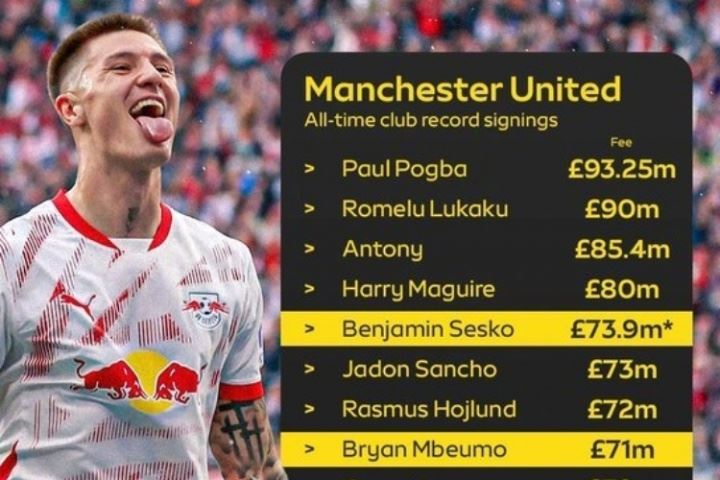 詹俊在社媒写道:曼联官宣斯洛文尼亚前锋塞斯科加盟,转会费近7400万镑,在俱乐部球员转会身价榜上排名第五。红魔新的锋线三叉戟耗资近两亿,他们在原来的俱乐部表现都相当不错:塞斯科上季有21球6助攻,姆贝莫20球8助攻,库尼亚17球6助攻。加上他们身后还有队长B费,相信任何对手的防线都将倍感吃力。